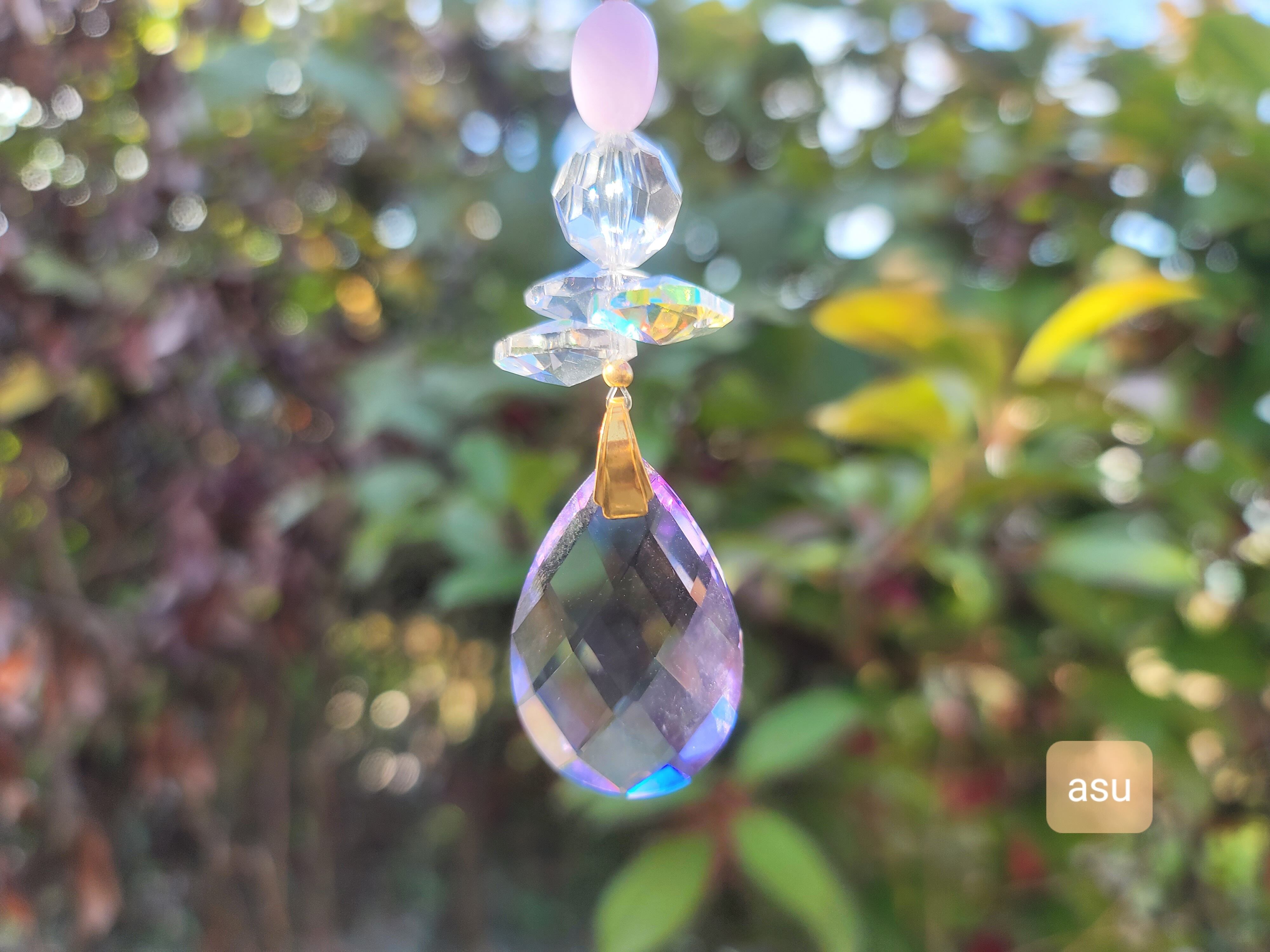 落ち着きも神秘的な可愛らしさも感じさせてくれるパープルカラーの雫のサンキャッチャー。